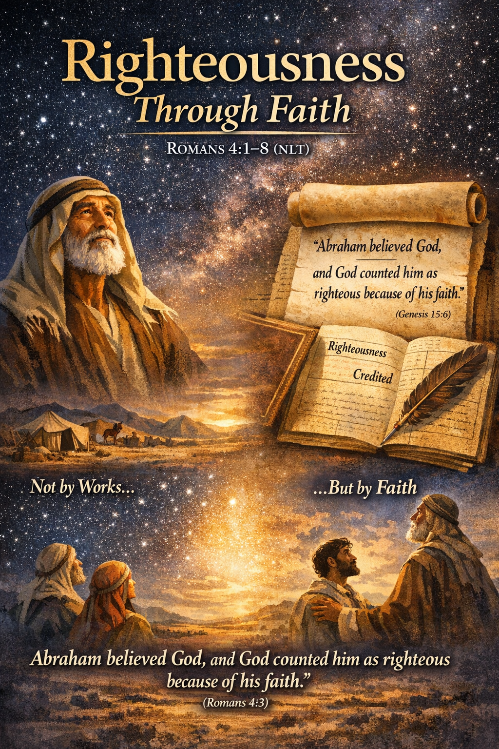 At that very moment, God counted him as righteous — not because of his works, but because of his faith.